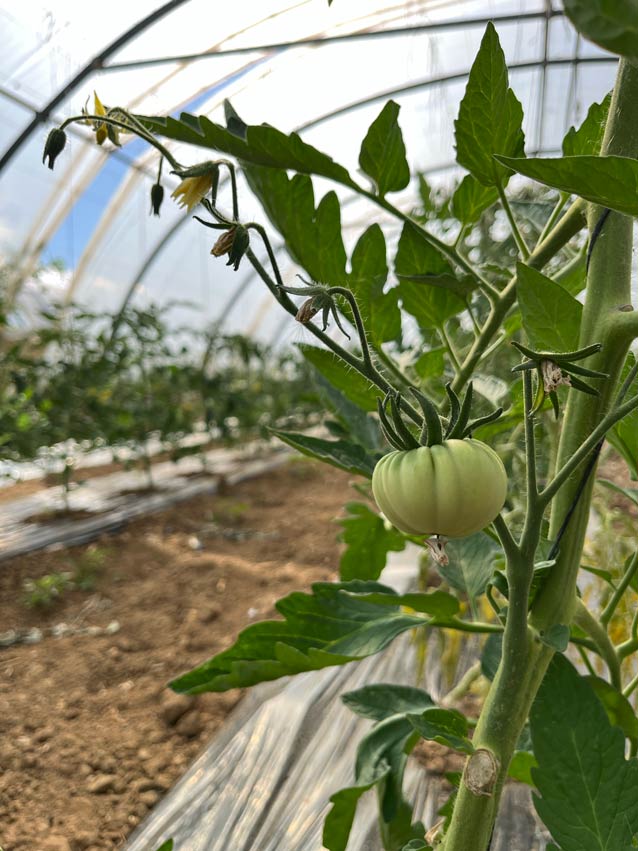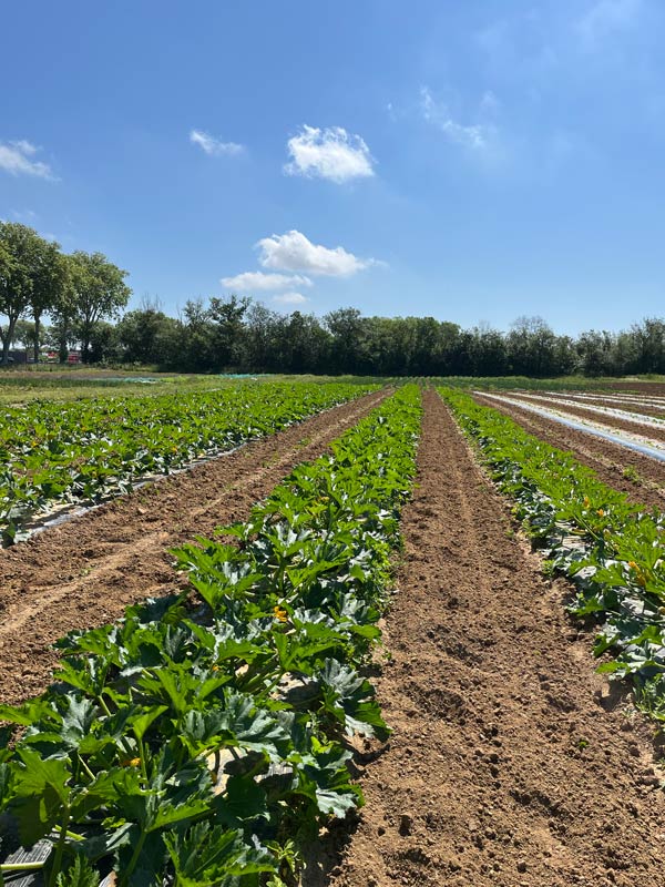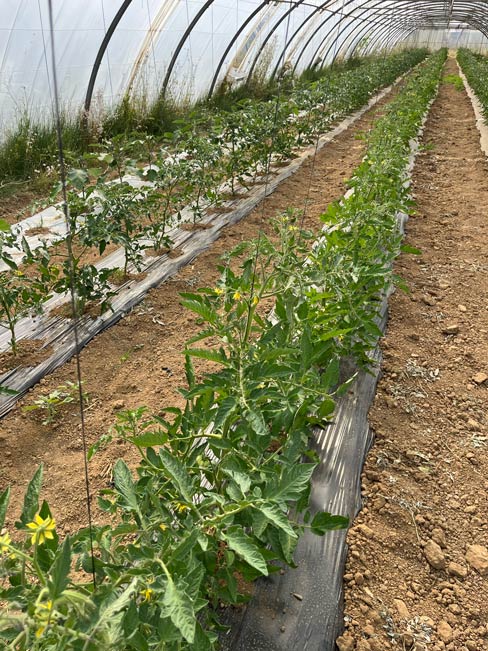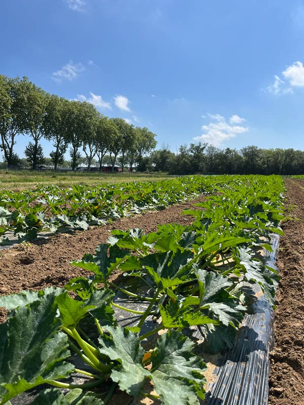 Les premières années sont marquées par des cultures estivales en quantités limitées : tomates, courgettes, aubergines, poivrons. Puis les surfaces s’étendent, les cycles de production se multiplient, sans jamais chercher la surenchère de variétés.